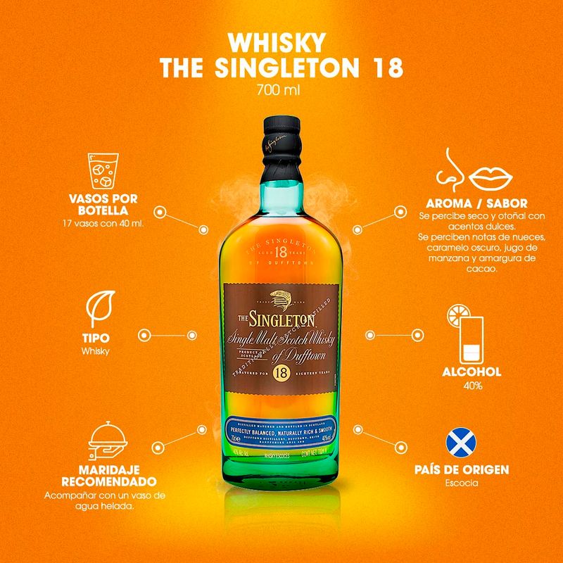El apasionante mundo del whisky con Talisker Malt 10 Años. Su color oro brillante se une al aroma del poderoso humo de turba con un toque salino de agua de mar. Notarás el sabor intenso de frutos secos y la robusta malta de cebada, todo en armonía con el característico toque ahumado. Este "Single Malt" de 10 años es un auténtico deleite para aquellos que buscan la autenticidad y el contraste.